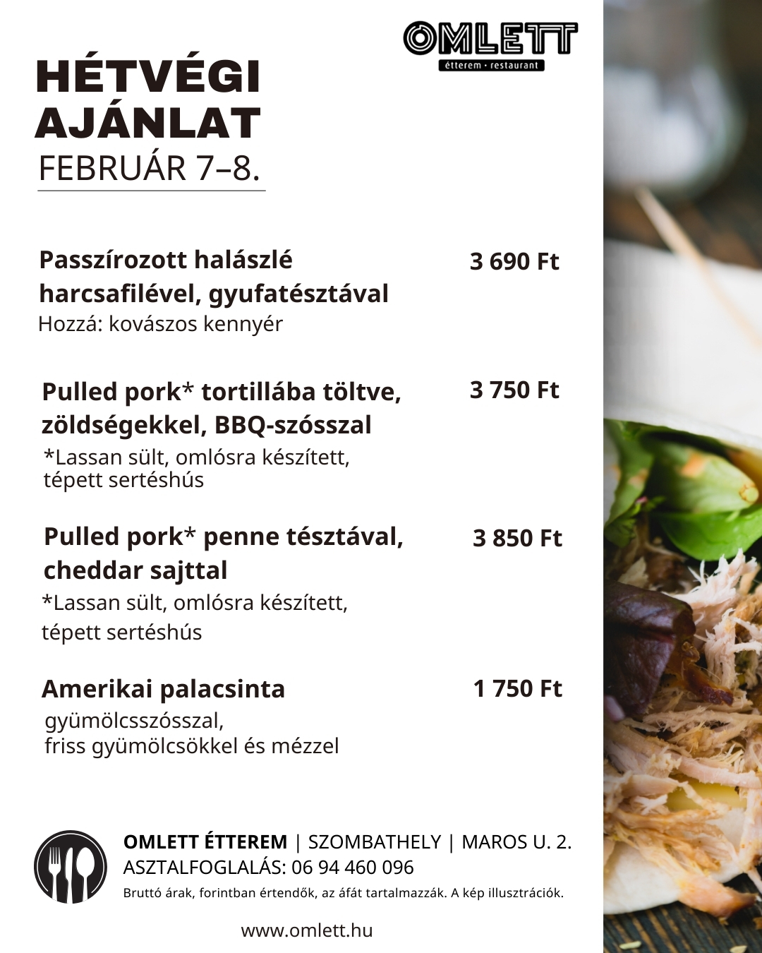 Cím: Omlett Étterem – Szombathely, Maros u. 2.