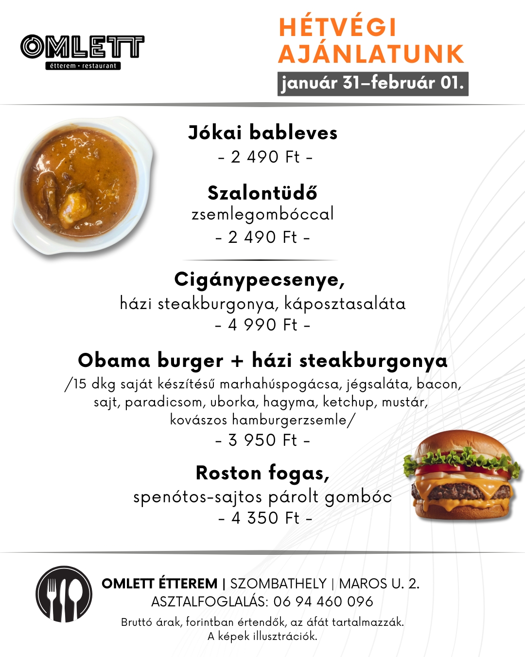 Ha szereted a házias ízeket, és nem riadsz vissza egy kis gasztronómiai időutazástól, akkor ezen a hétvégén az Omlett Étterem pont neked való menüvel vár!